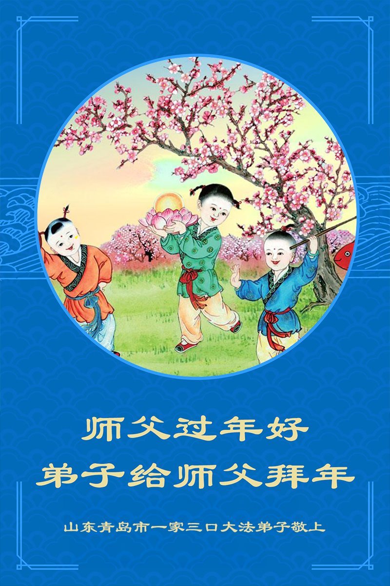 Falun Dafa praktikanti iz grada Kingdao s poštovanjem žele Učitelju Li Hongdžiju srećnu kinesku Novu godinu (19 čestitki)