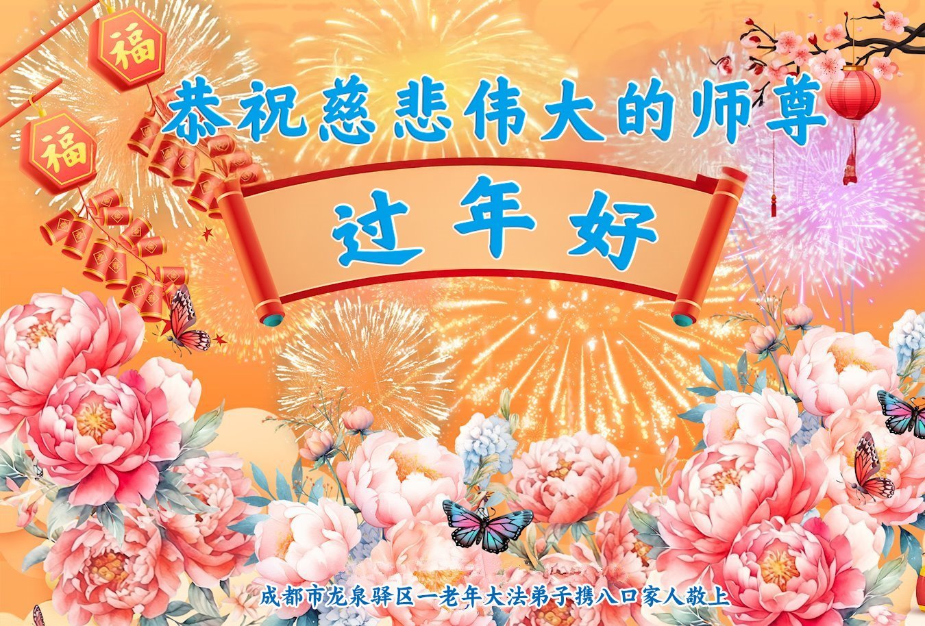Falun Dafa praktikanti iz grada Čengdua s poštovanjem žele Učitelju Li Hongdžiju srećnu kinesku Novu godinu (19 čestitki)