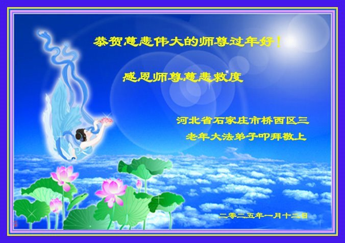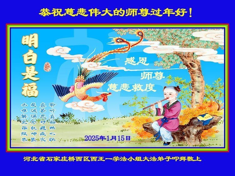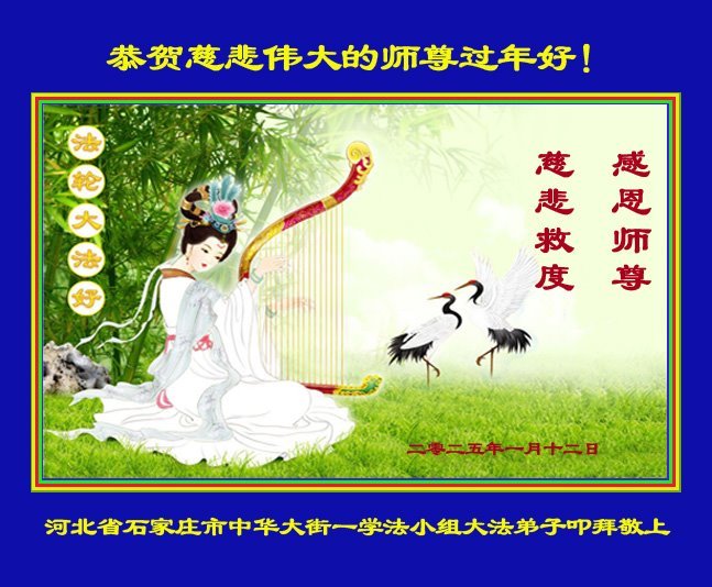Falun Dafa praktikanti iz grada Šiđadžuang s poštovanjem žele Učitelju Li Hongdžiju srećnu kinesku Novu godinu (18 čestitki)