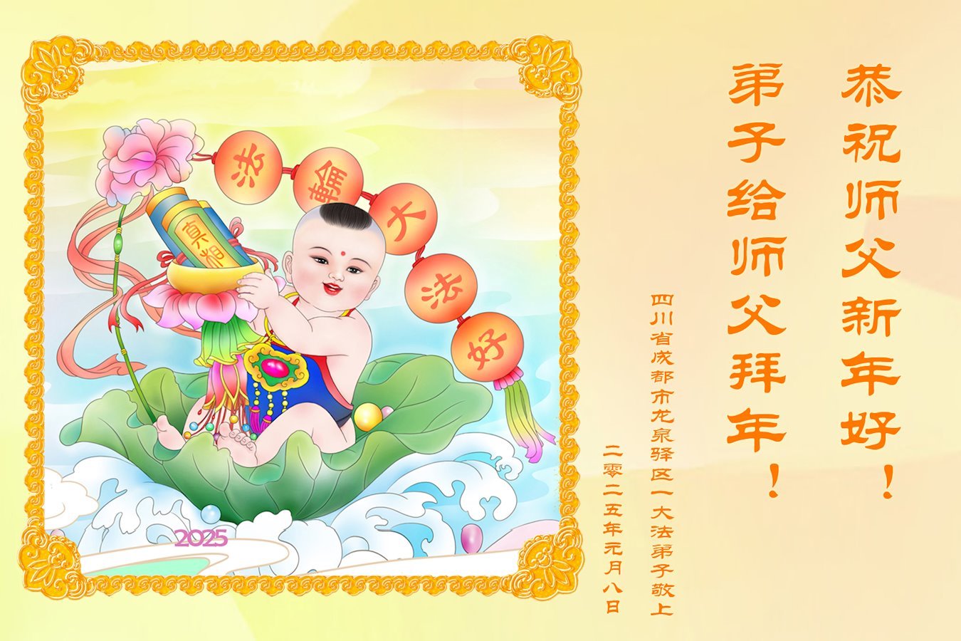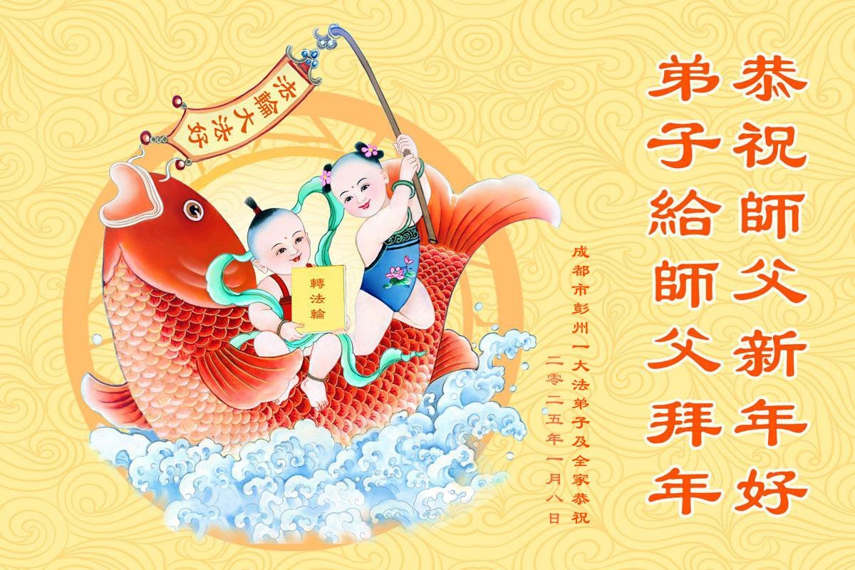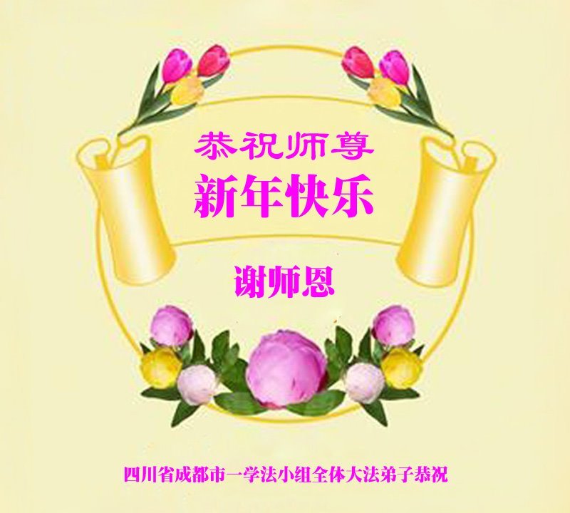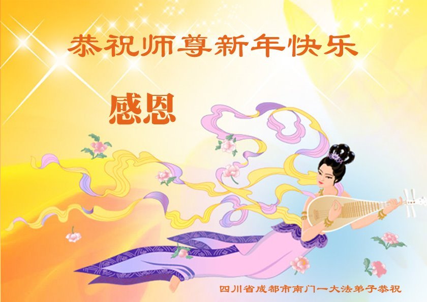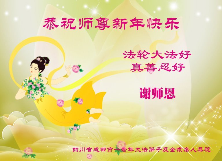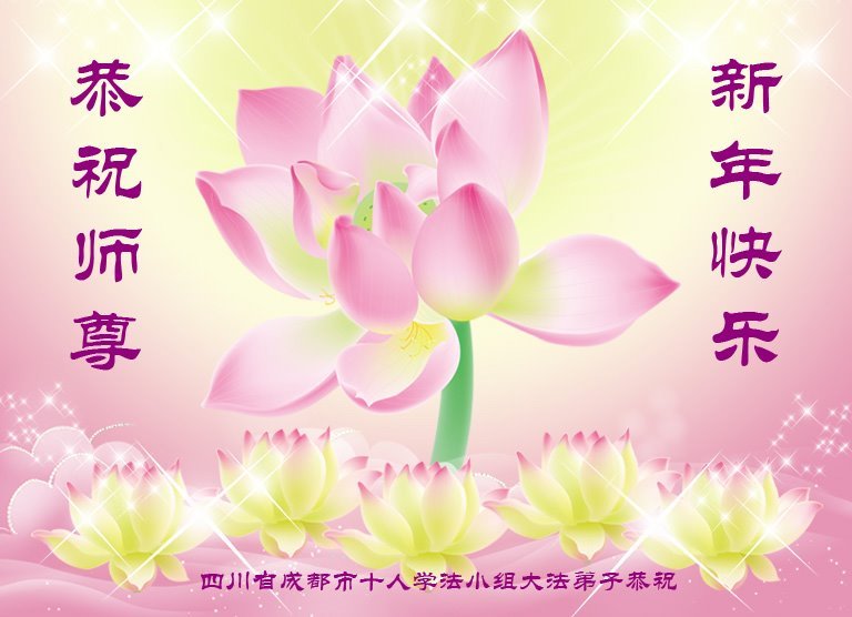 Falun Dafa praktikanti iz grada Čengdua s poštovanjem žele Učitelju Li Hongdžiju srećnu kinesku Novu godinu (19 čestitki)