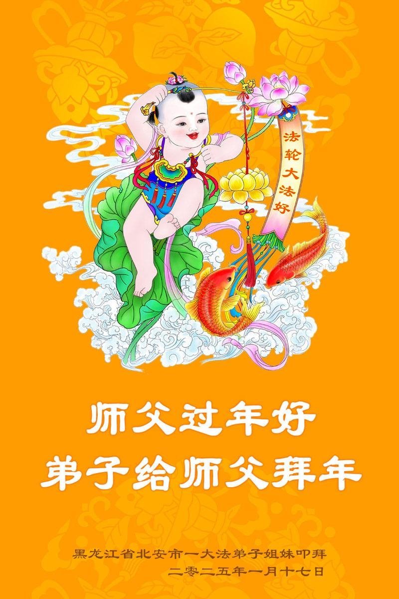 Falun Dafa praktikanti iz provincije Heilongjiang s poštovanjem žele Učitelju Li Hongdžiju srećnu kinesku Novu godinu (18 čestitki)