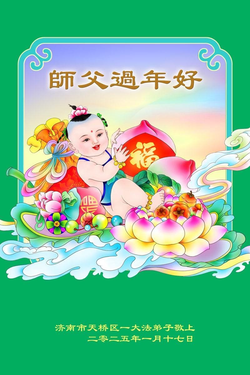 Falun Dafa praktikanti iz grada Jinan s poštovanjem žele Učitelju Li Hongdžiju srećnu kinesku Novu godinu (18 čestitki)