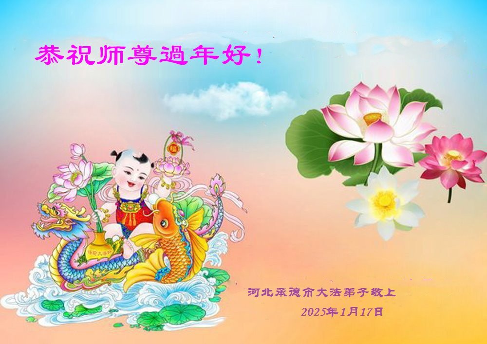 Falun Dafa praktikanti iz provincije Hebei s poštovanjem žele Učitelju Li Hongdžiju srećnu kinesku Novu godinu (19 čestitki)