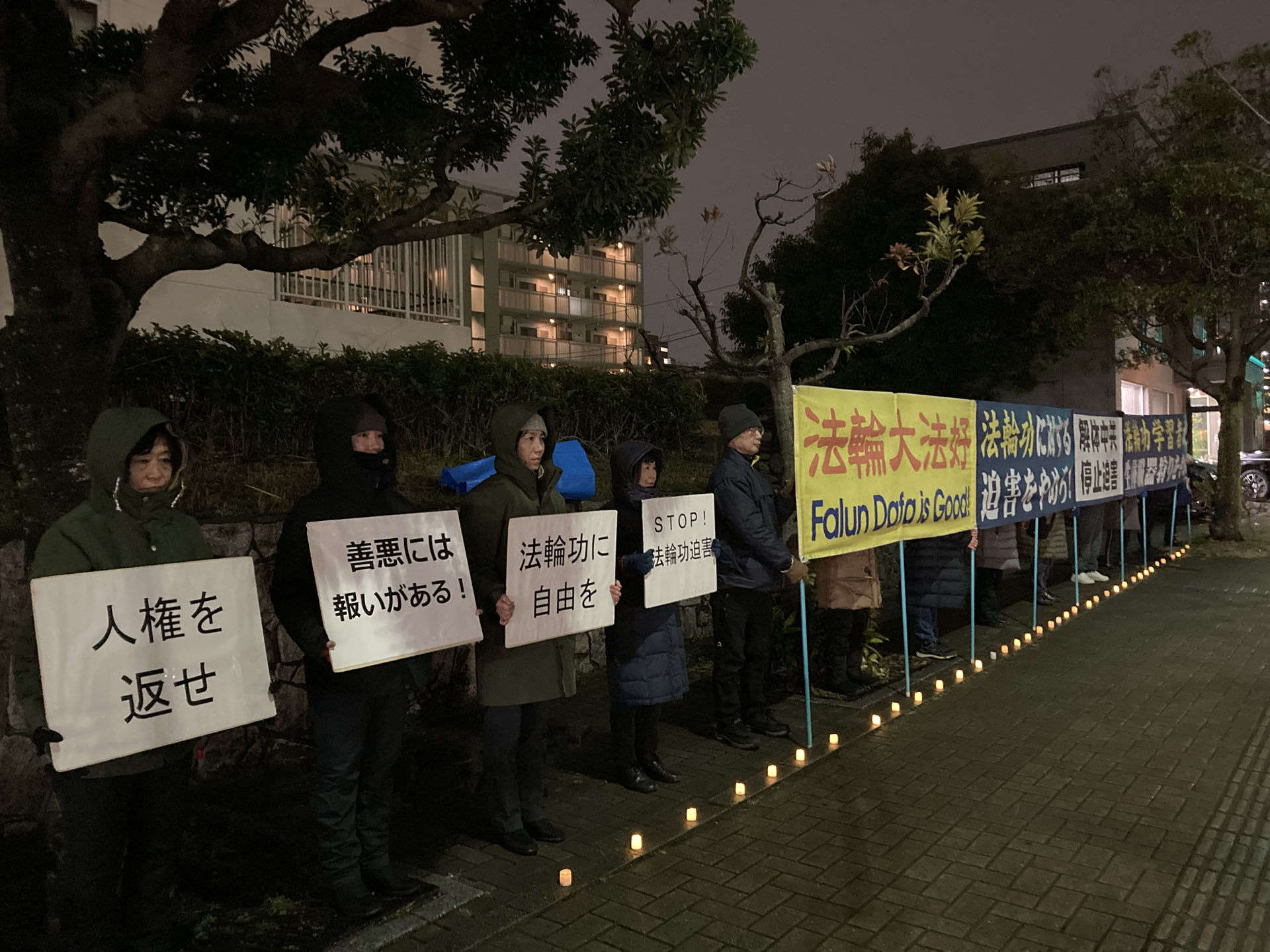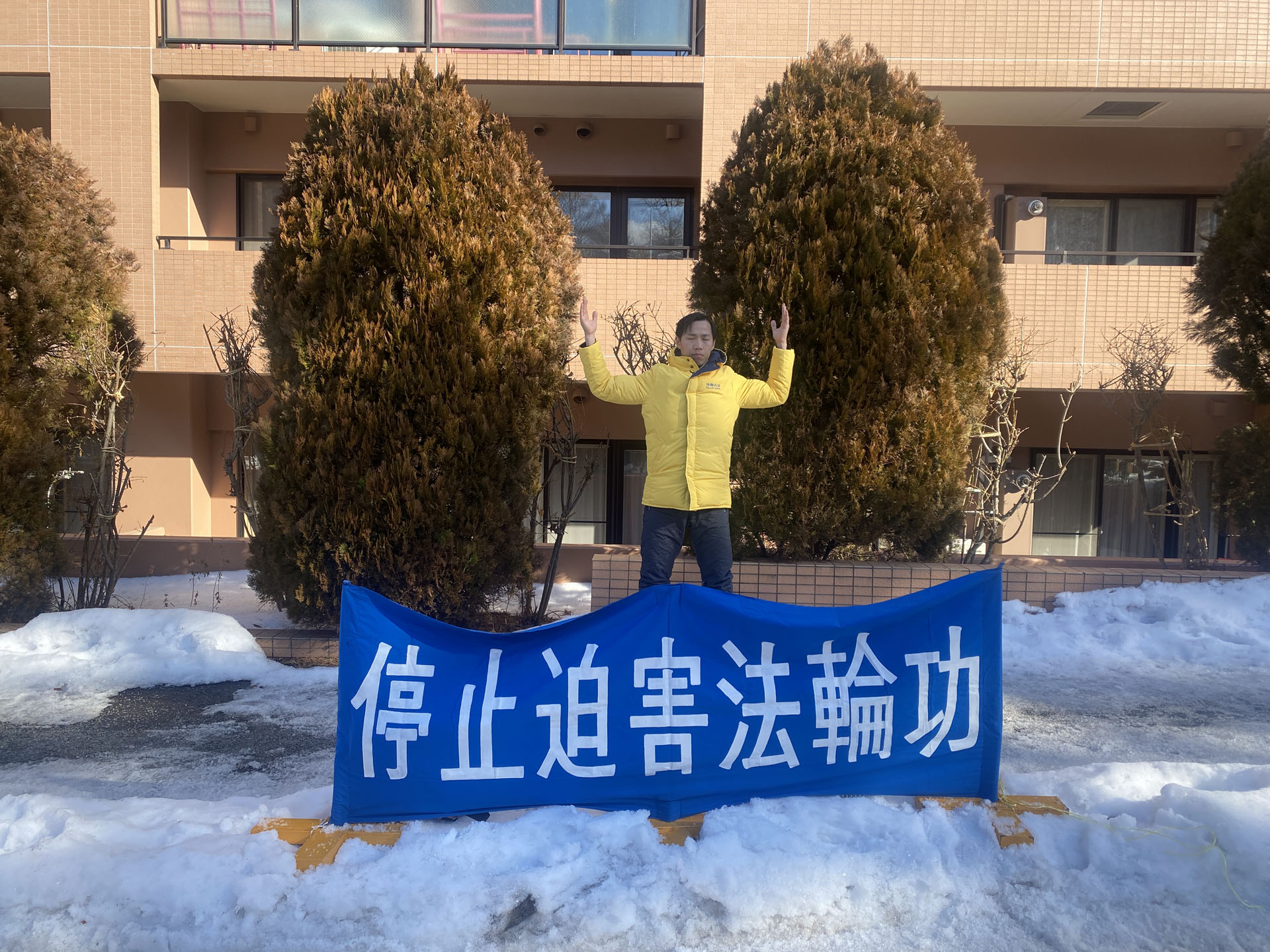 Praktikanti su mirno protestovali ispred kineskog konzulata u gradu Saporo i držali transparent sa natpisom „Okončati progon Falun Dafe“. Zbog lošeg zimskog vremena protest je privukao pažnju brojnih prolaznika. Neki su stali da bolje pogledaju, a neki vozači su usporili da bi pročitali transparente.