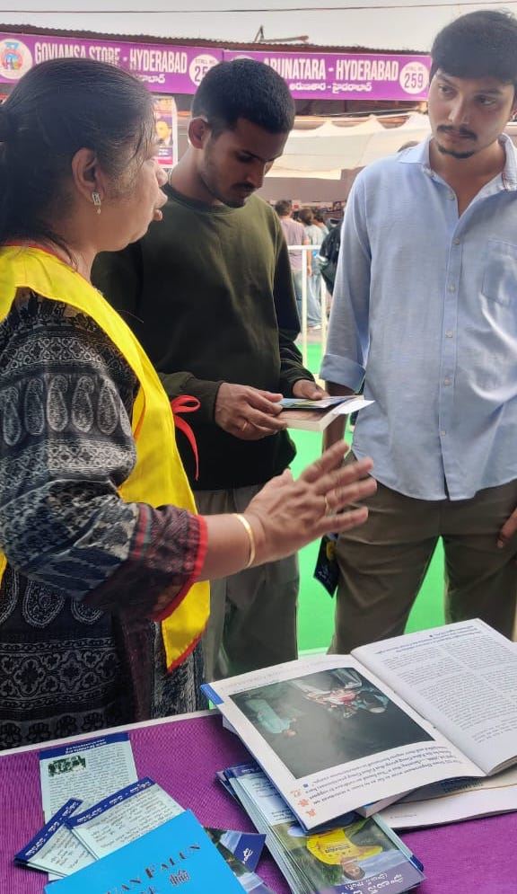 U decembru 2024. i prošlog januara, praktikanti u Južnoj Indiji su učestvovali na dva velika sajma knjiga, održana u Hyderabadu i Vijayawadi. Posjetioce sajmova, iz svih sfera života, su upoznali sa Falun Dafa i Dafa knjigama i otkrili da mnogi ljudi podržavaju pozitivne poruke Falun Dafa.