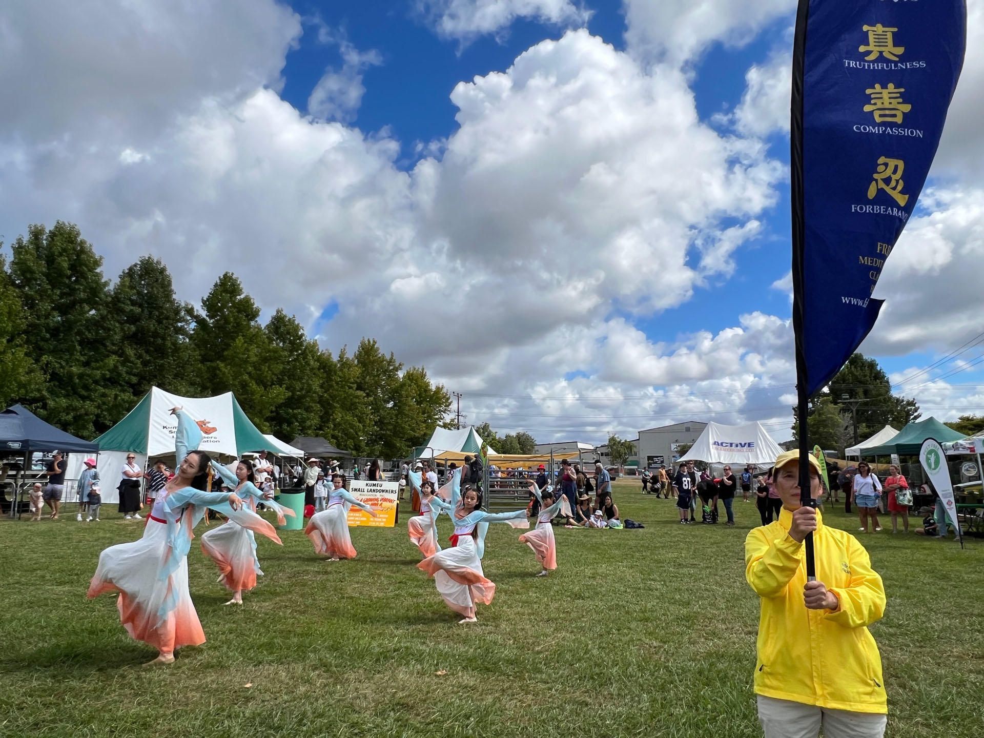 Falun Dafa praktikanti sudjelovali su na godišnjem sajmu Poljoprivrednog i hortikulturnog društva okruga Kumeu za vikend od 8. do 9. ožujka 2025. Ovaj popularni obiteljski događaj prikazuje poljoprivredu, izložbe životinja i natjecanja, glazbu i razne kulturne ponude. Falun Dafa štand je bio podijeljen u pet odjeljaka: kaligrafija, izrada origami lotosa, tradicionalno rezanje papira i demonstracije i podučavanje Falun Dafa vježbi . Mnogi su posjetitelji u subotu učili vježbe.