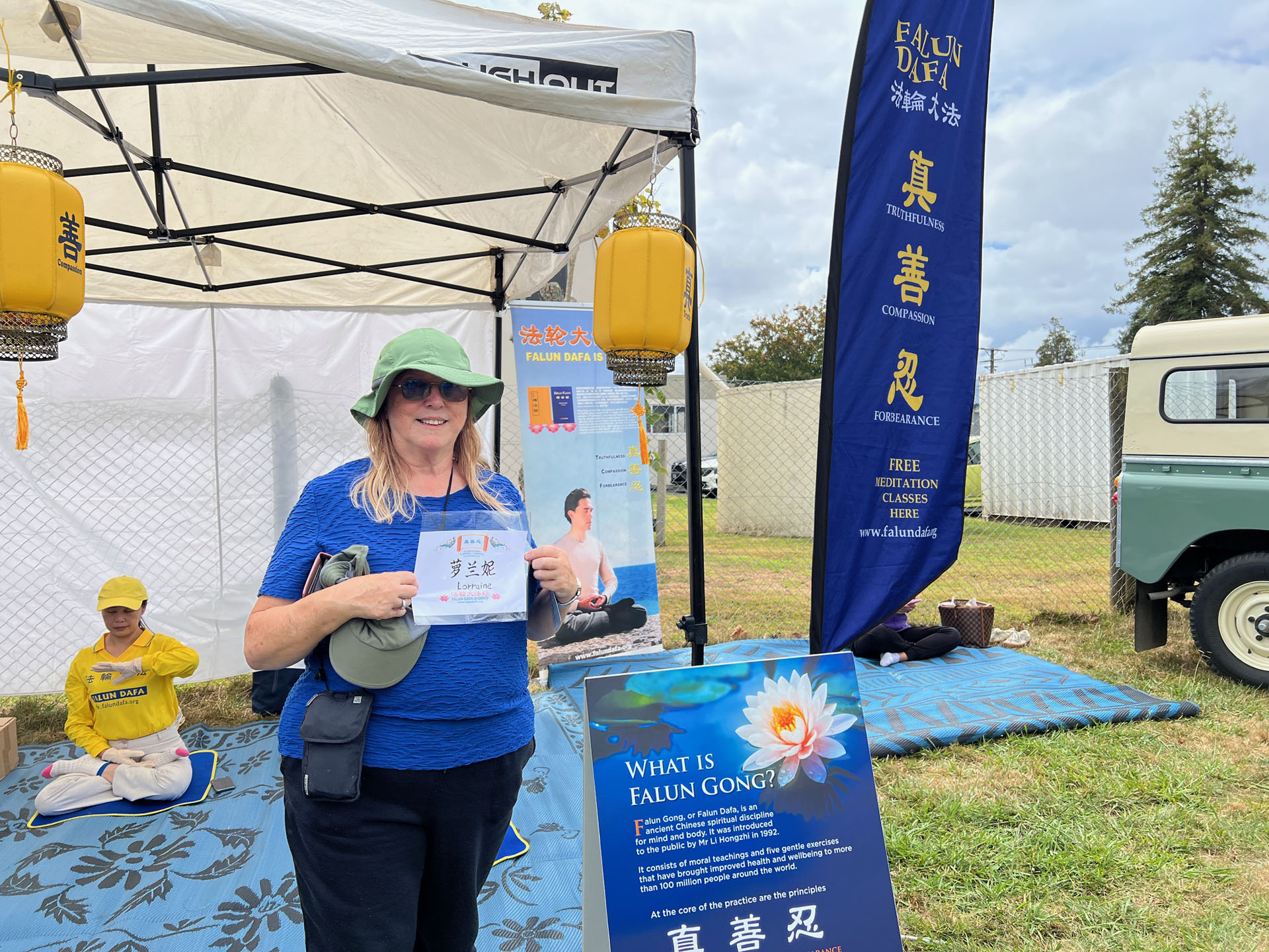 Lorraine i Richard upravitelji su novozelandskog centra za njegu Matea Trust. Lorraine je rekla: “Mislim da je ova praksa sjajna. Vidite [Falun Dafa praktikante] kako meditiraju i izgledaju tako mirno. Međutim, zbog problema s koljenima ne mogu sjediti kao oni. Gledala sam njihovu demonstraciju vježbi ranije ... i izgledali su tako opušteno! Želim dovesti svoje pacijente iz centara ovamo. Mnogi od njih imaju problema s tjeskobom. Nadam se da će doći raditi vježbe. To će im pomoći da se smire; mislim da bi to bilo sjajno.”