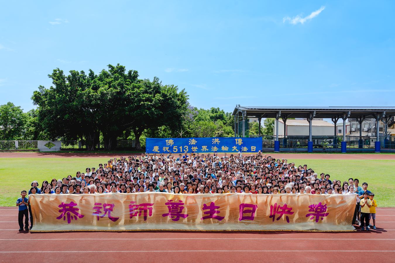 Praktikanti su 4. svibnja 2025. proslavili nadolazeći Svjetski dan Falun Dafa, koji se svake godine obilježava 13. svibnja. Ovo je 33. godišnjica od prvog javnog podučavanja prakse u Kini. Datum 13. svibnja je ujedno i rođendan g. Li Hongzhija, osnivača Falun Dafa. U osnovnoj školi Chyau Zhong u Taichungu, praktikanti su se postrojili iza transparenta na kojem je pisalo “Želimo poštovanom Učitelju sretan rođendan.” Spojili su dlanove u znak poštovanja, fotografirali se i snimili video s rođendanskom čestitkom Učitelju Liju.