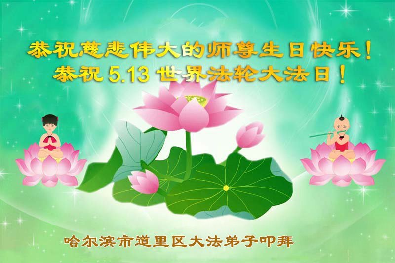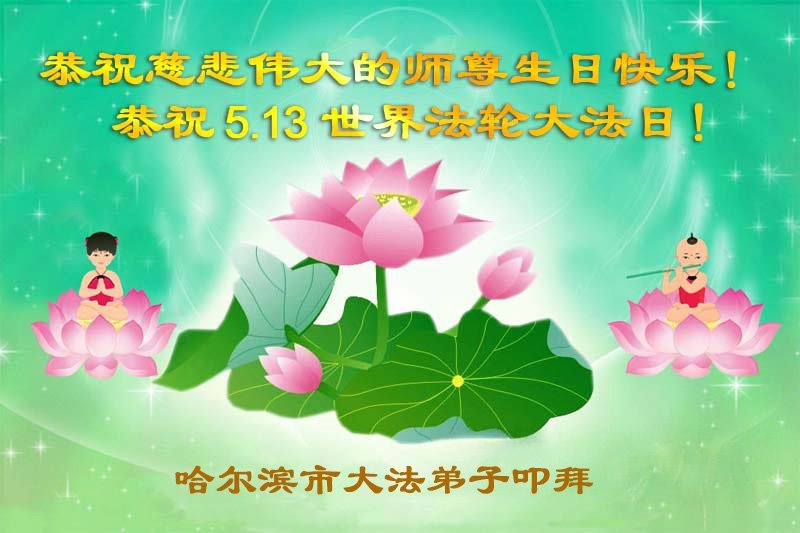 U ovom izvješću predstavljamo selekciju od 19 čestitki koje su poslali praktikanti Falun Dafa iz Harbina iz kineske provincije Heilongjiang. Praktikanti izražavaju duboku zahvalnost Učitelju što im je podario principe Istinitosti-Suosjećanja-Tolerancije i za blagodati uslijed kultiviranja u Dafa. Zavjetovali su se da će biti marljiviji u kultivaciji kako bi bili dostojni Učiteljevog mukotrpnog spasenja i pomogli većem broju ljudi spoznati veličanstvenost Falun Dafa.