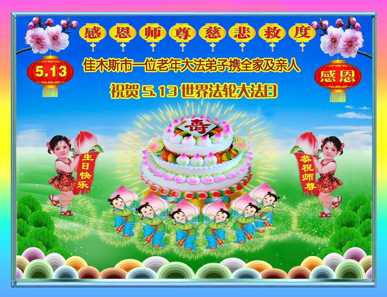 Praktikanti Falun Dafa iz Jiamusija žele poštovanom Učitelju sretan rođendan i slave Svjetski dan Falun Dafa!