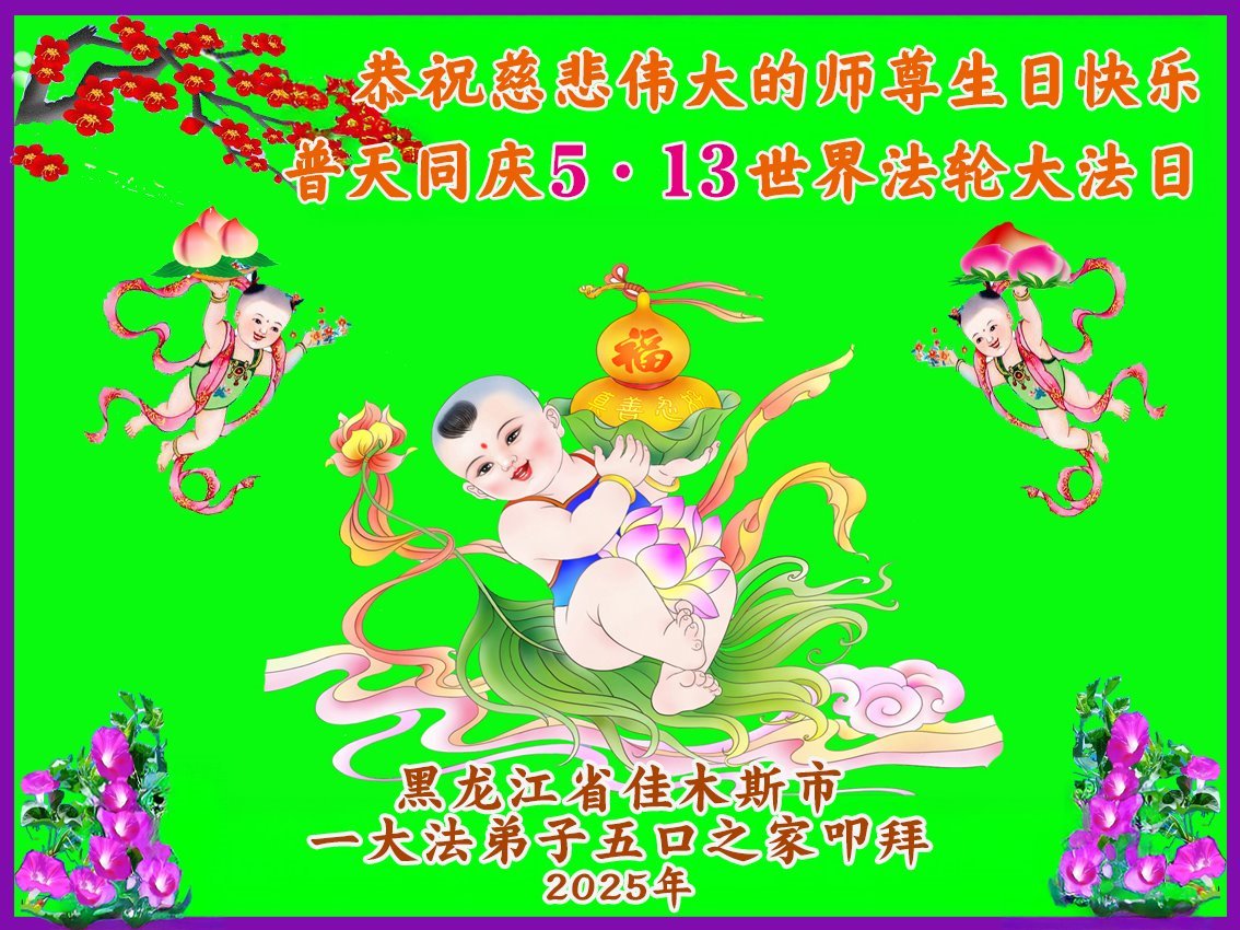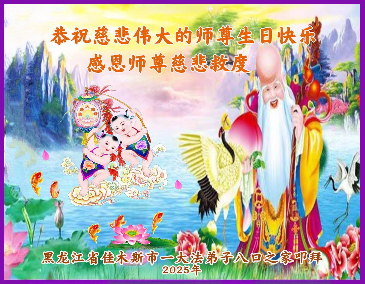 U ovom izvješću prezentiramo selekciju od 18 čestitki koje šalju praktikanti Falun Dafa iz Jiamusija iz kineske provincije Heilongjiang, povodom posebne prigode 13. svibnja 2025.: 26. Svjetskog dana Falun Dafa i rođendana Učitelja Li Hongzhija.