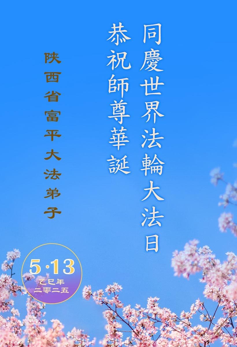Praktikanti Falun Dafa iz provincije Shaanxi žele poštovanom Učitelju sretan rođendan i slave Svjetski dan Falun Dafa!