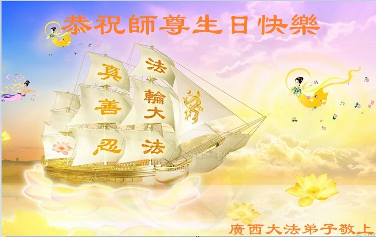 Praktikanti iz autonomne regije Guangsi Džuang su napisali: „Saosećajni Učitelju, brinuli ste se o nama, patili za nas, uklanjali našu karmu i štitili nas od davnina do danas. Ne možemo izraziti našu zahvalnost rečima. Možemo samo da nastavimo da pamtimo Fa, povećavamo svoje ispravne misli i sustižemo period Fa-ispravljanja. S poštovanjem dočekujemo Učitelja nazad [u Kinu]!“