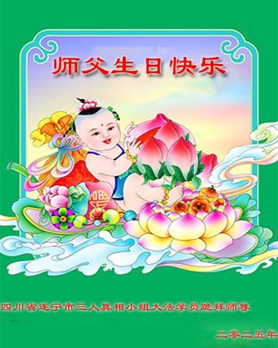Praktikanti iz okruga Đianping, provincija Liaoning, napisali su u svojoj čestitki poslatoj Minghuiju: „Hvala vam, Učitelju Li, što snas učite principima Istinitosti-Blagosti-Trpeljivosti. Brinete se o nama na svakom koraku. Naša zahvalnost je neopisiva i bićemo sve bolji i bolji na našim putovanjima kultivacije.“