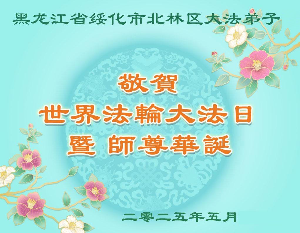 Falun Dafa praktikanti iz provincije Hejlungđang žele poštovanom Učitelju srećan rođendan i proslavljaju Svetski dan Falun Dafe!