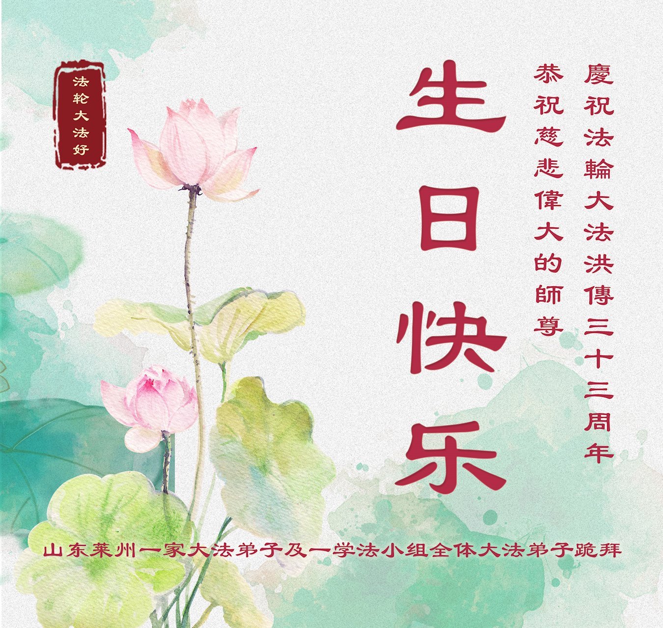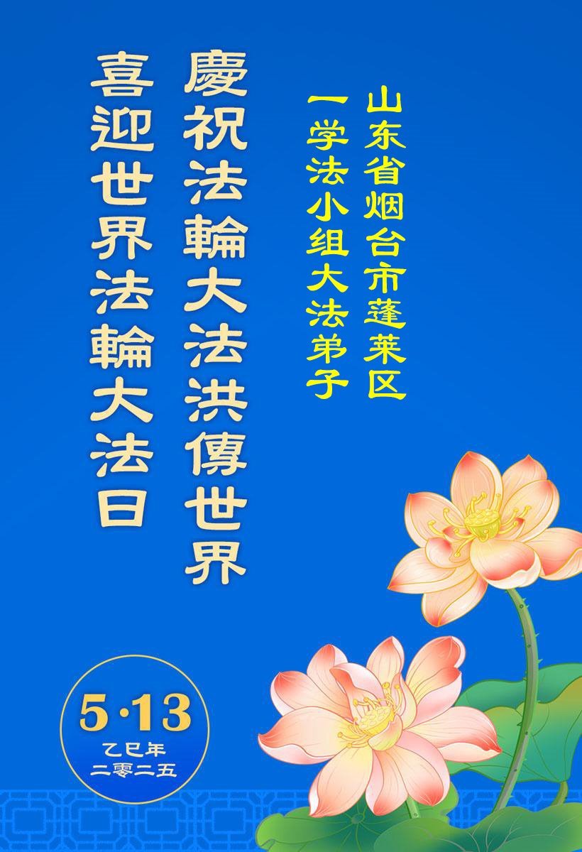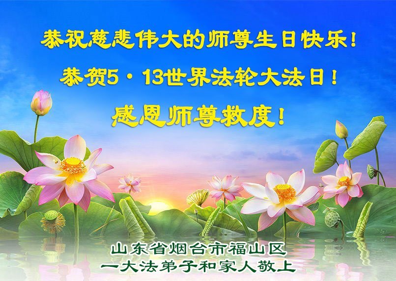 Praktikanti Falun Dafa iz provincije Shandong žele poštovanom Učitelju sretan rođendan i slave Svjetski dan Falun Dafa!