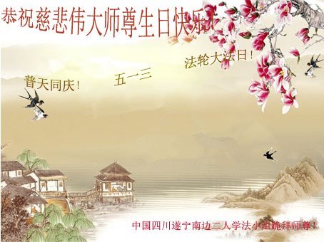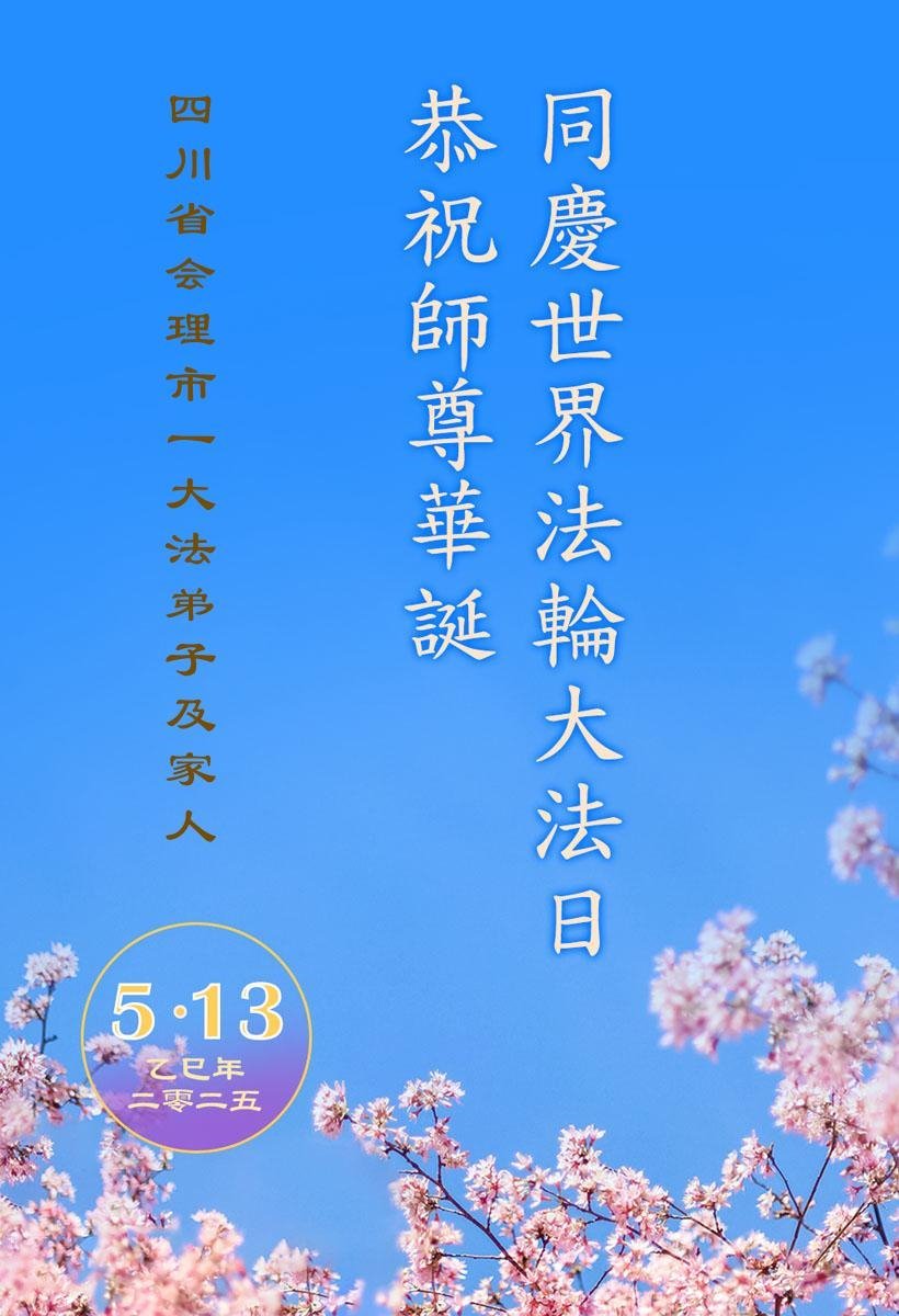 Falun Dafa praktikanti iz provincije Sičuan žele poštovanom Učitelju srećan rođendan i proslavljaju Svetski dan Falun Dafe!