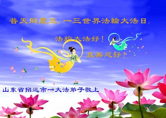 Falun Dafa praktikanti iz provincije Šandong žele poštovanom Učitelju srećan rođendan i proslavljaju Svetski dan Falun Dafe!