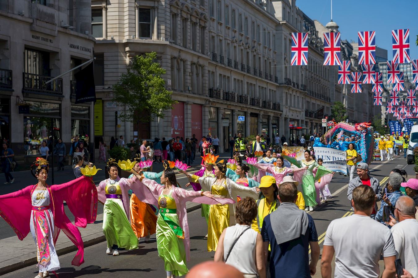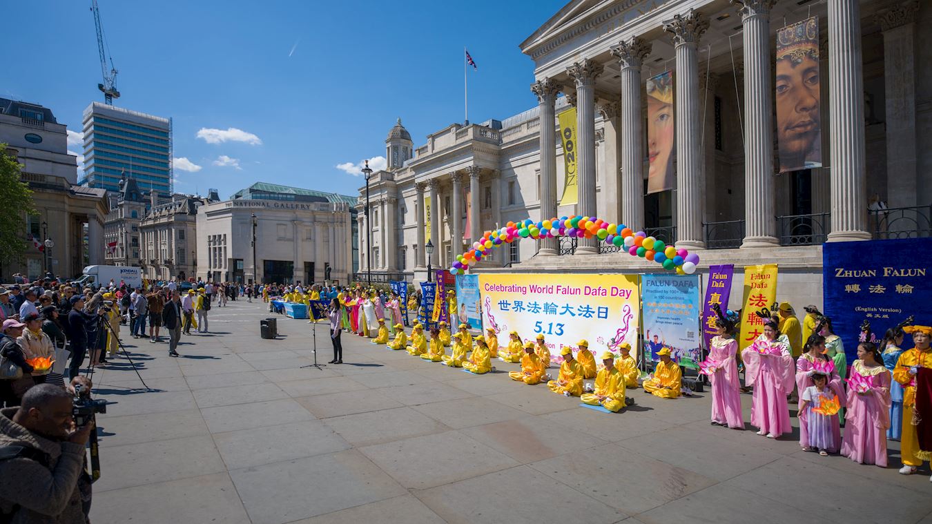 Praktikanti su 10. maja 2025. godine održali veliku paradu i skup u centru Londona kako bi proslavili 26. Svjetski dan Falun Dafa, koji se obilježava 13. maja. Ovaj dan je ujedno bio i 33. godišnjica javnog predstavljanja ove duhovne prakse i rođendan njenog osnivača, Učitelja Li Hongzhija.