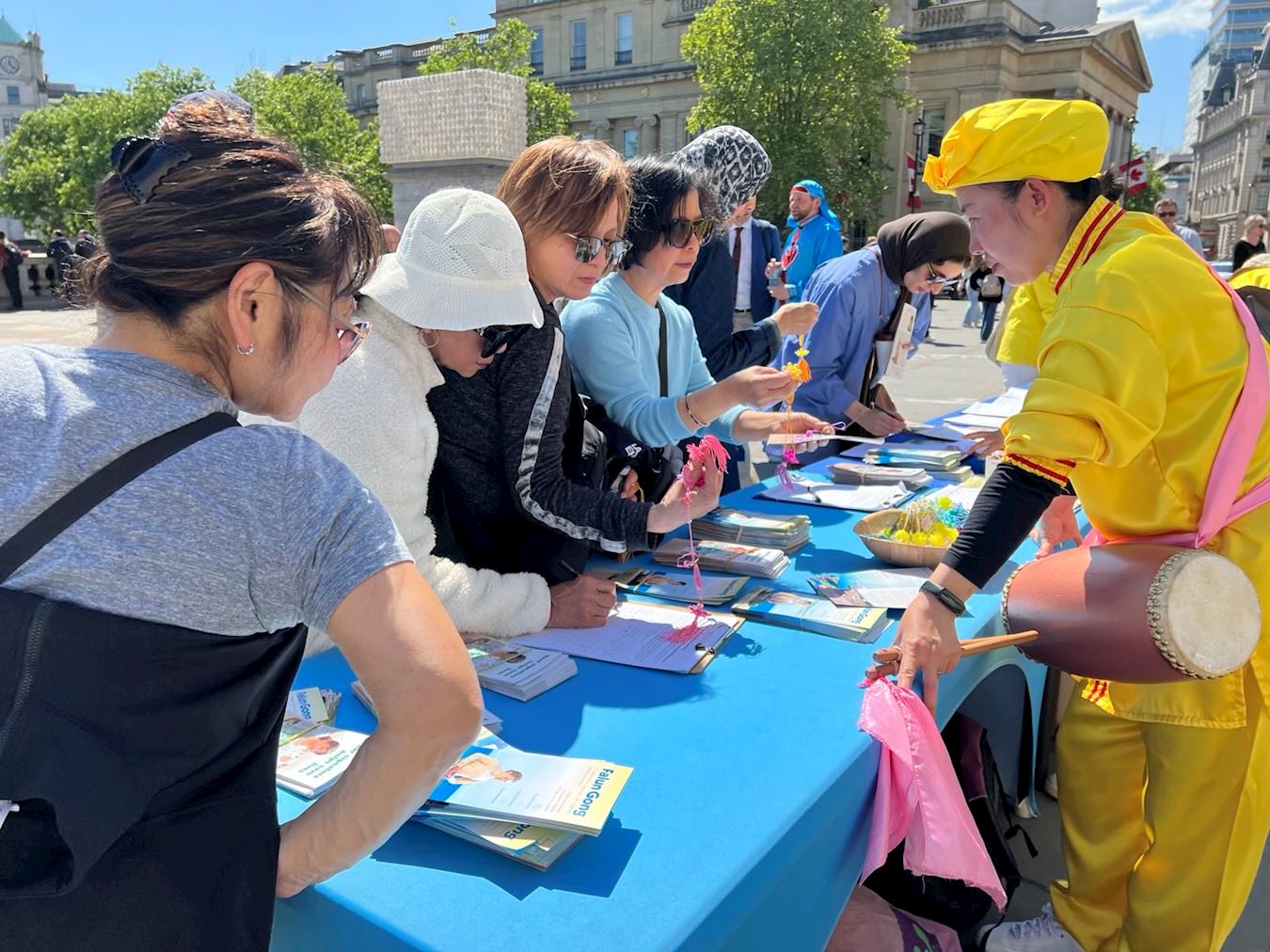 Dok je parada trajala i tokom slavlja, mnogi ljudi su se zaustavljali da gledaju paradu, fotografišu se, uzimaju letke i izraze podršku Falun Dafa.