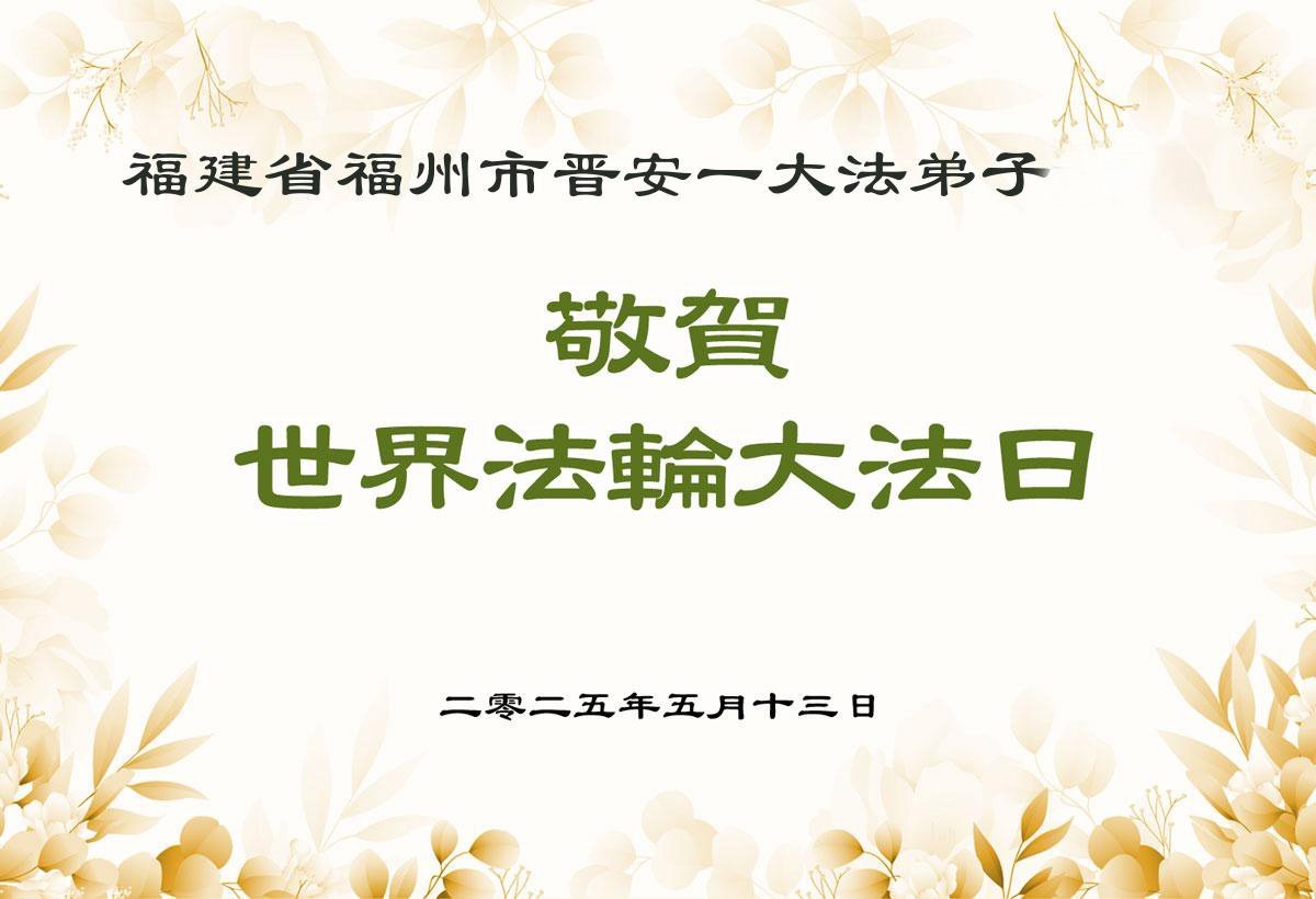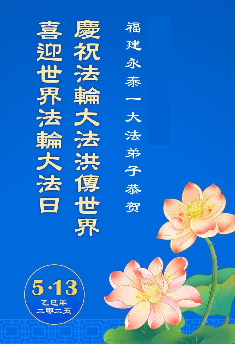 Falun Dafa praktikanti iz provincije Fuđijan žele poštovanom Učitelju srećan rođendan i proslavljaju Svetski dan Falun Dafe!