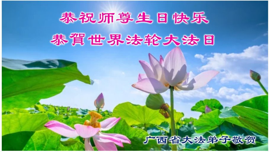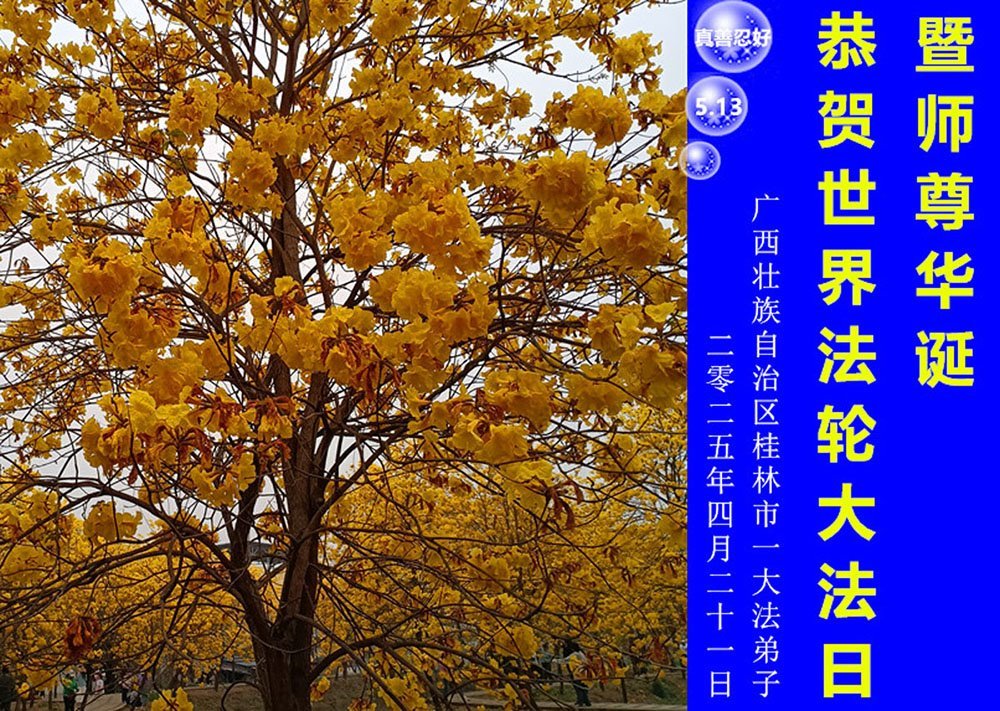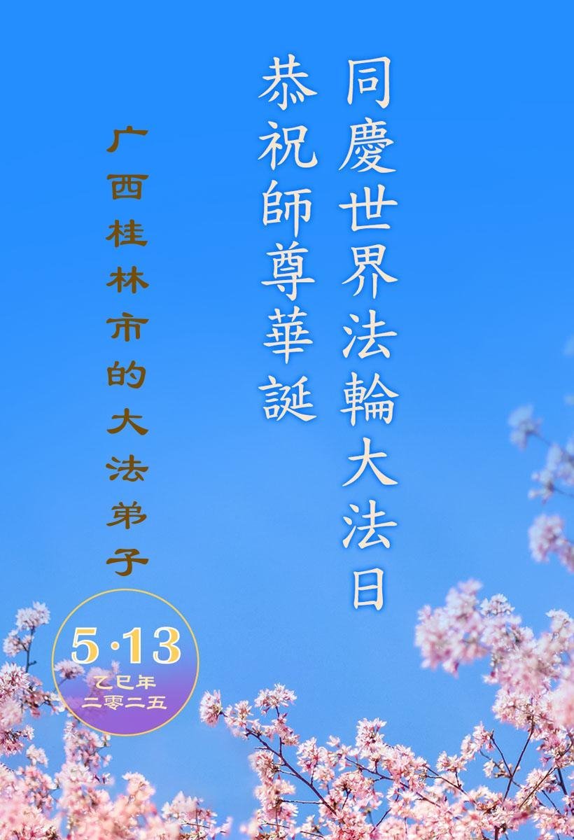 Falun Dafa praktikanti iz Guangsija žele poštovanom Učitelju srećan rođendan i proslavljaju Svetski dan Falun Dafe!