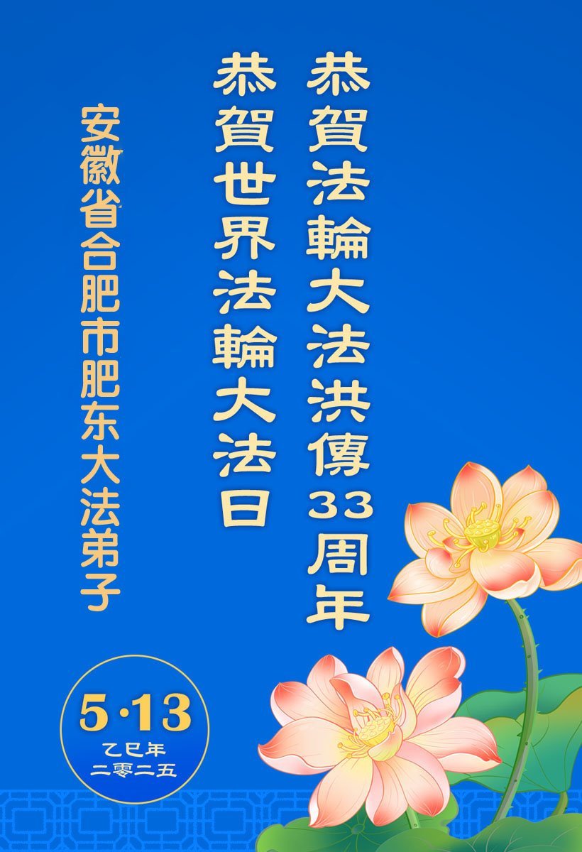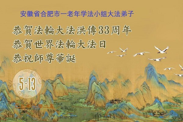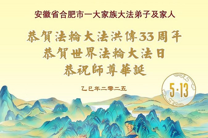 Falun Dafa praktikanti iz provincije Anhui žele poštovanom Učitelju srećan rođendan i proslavljaju Svetski dan Falun Dafe!