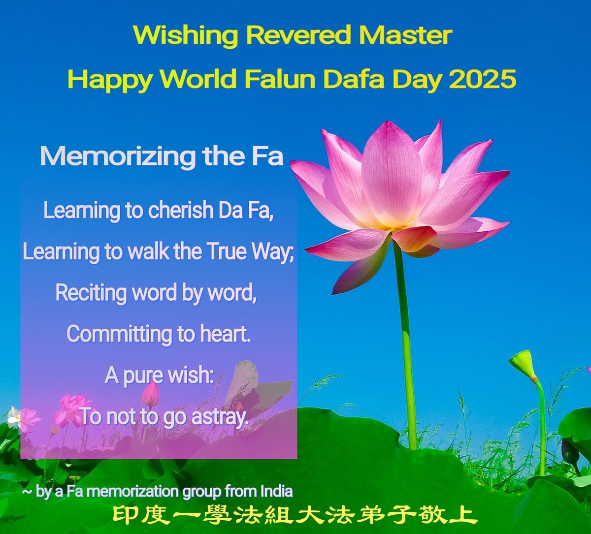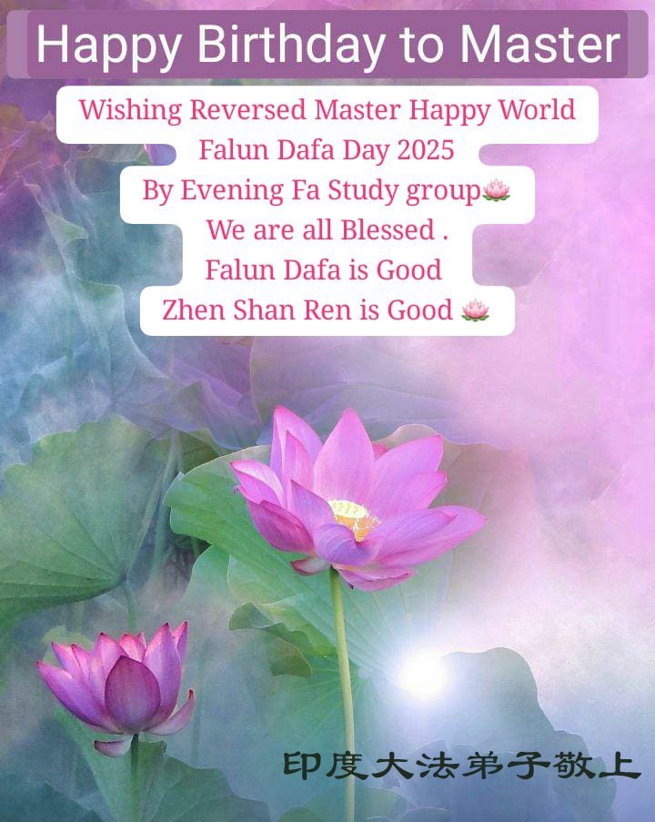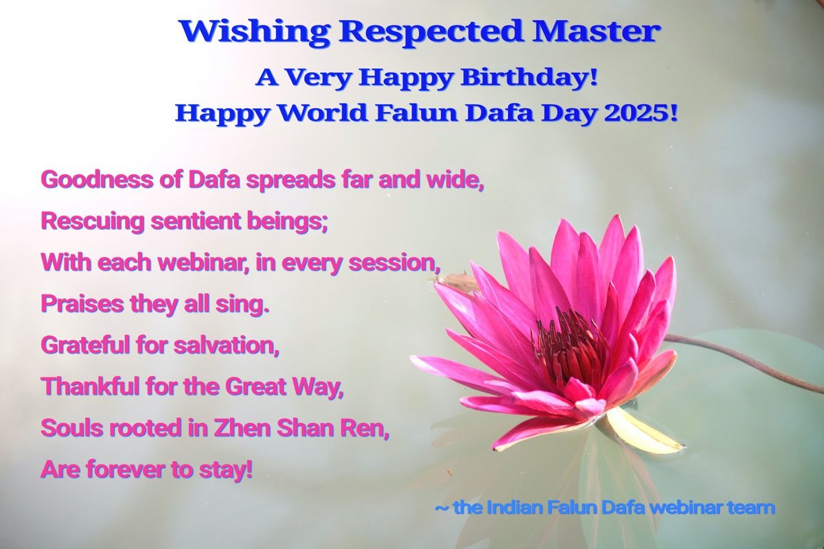 Falun Dafa praktikanti iz indijske Falun Dafa onlajn grupe žele poštovanom Učitelju srećan rođendan! Srećan Svetski dan Falun Dafe!