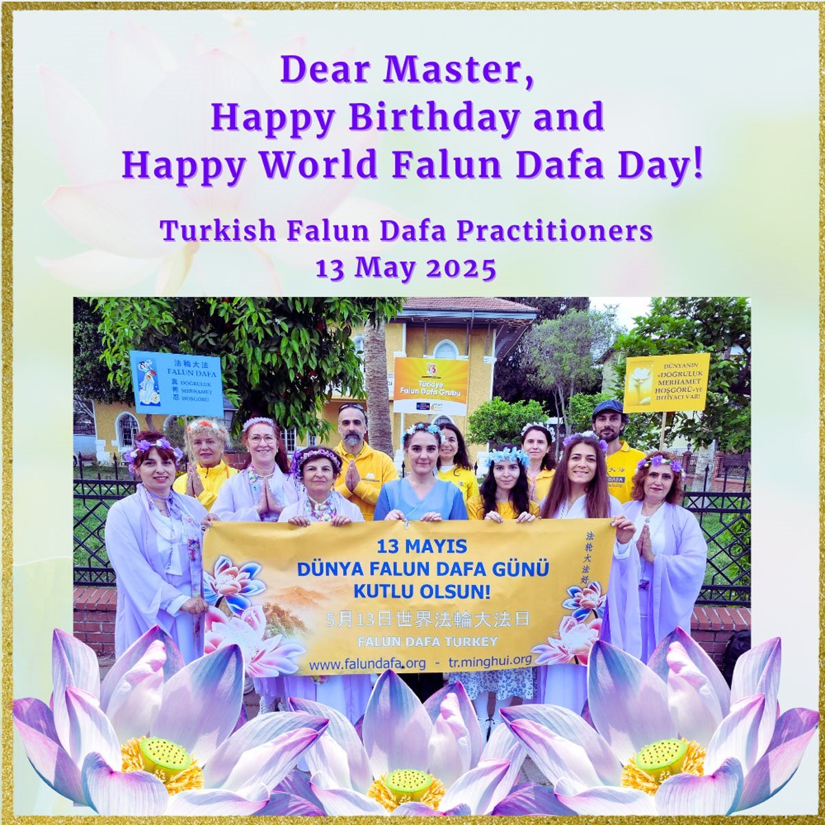 Praktikanti iz 48 zemalja i regija poslali su čestitke Minghui-ju povodom 26. Svjetskog dana Falun Dafa i 74. rođendana Učitelja Li Hongzhi-a, osnivača ove prakse.