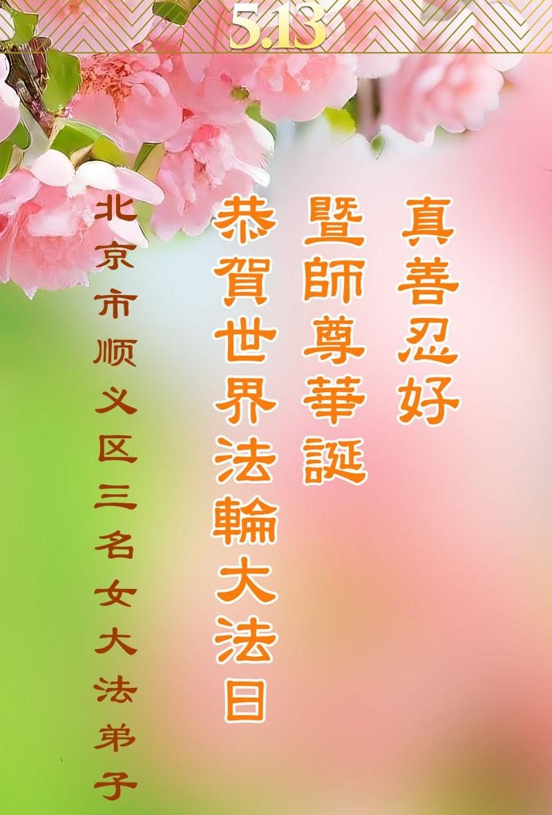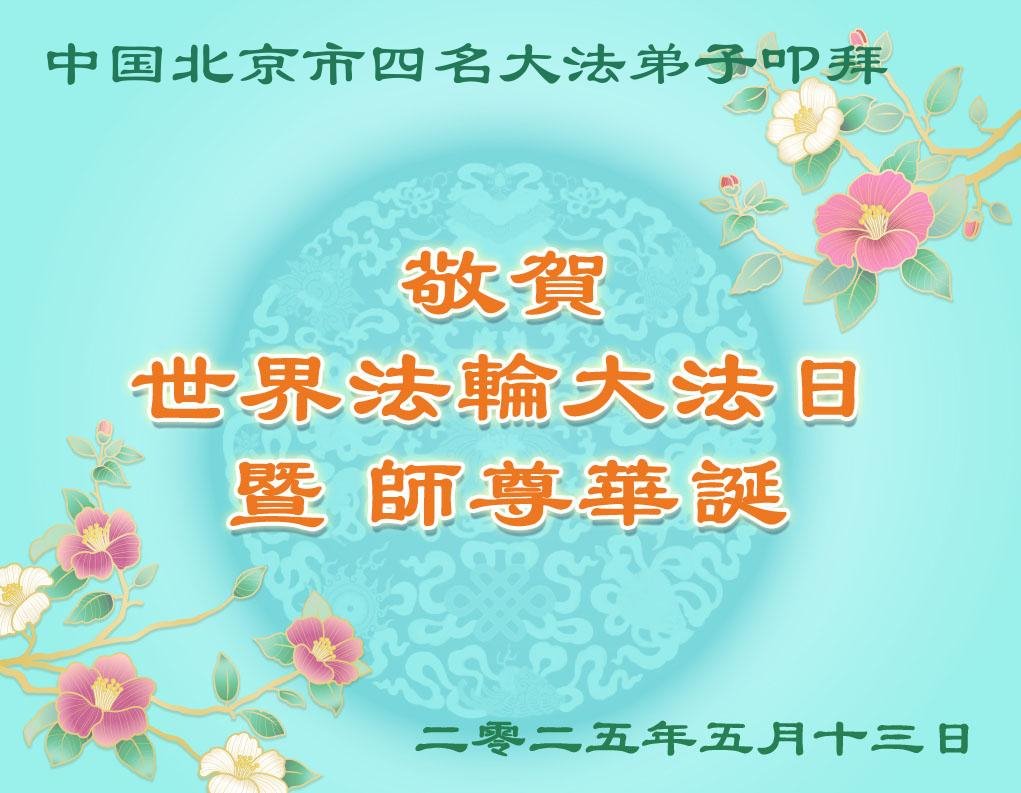 Praktikanti Falun Dafa iz Pekinga žele poštovanom Učitelju sretan rođendan i slave Svjetski dan Falun Dafa!