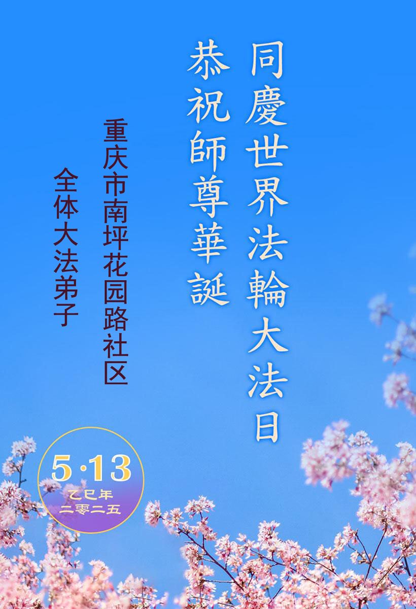 Falun Dafa praktikanti iz Čongkinga žele poštovanom Učitelju srećan rođendan i proslavljaju Svetski dan Falun Dafe!