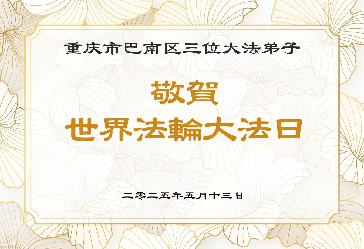 U ovom izveštaju predstavljamo izbor od 22 čestitke koje su poslali praktikanti Falun Dafe u Čongkingu, Kina.